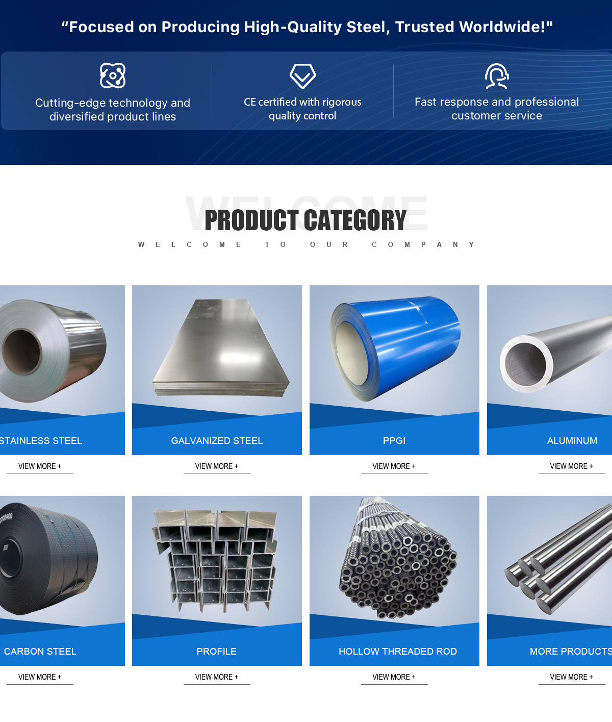 Productos principales:Acero inoxidable, acero galvanizado, acero de perfil, tubería de acero sin costura, acero al carbono